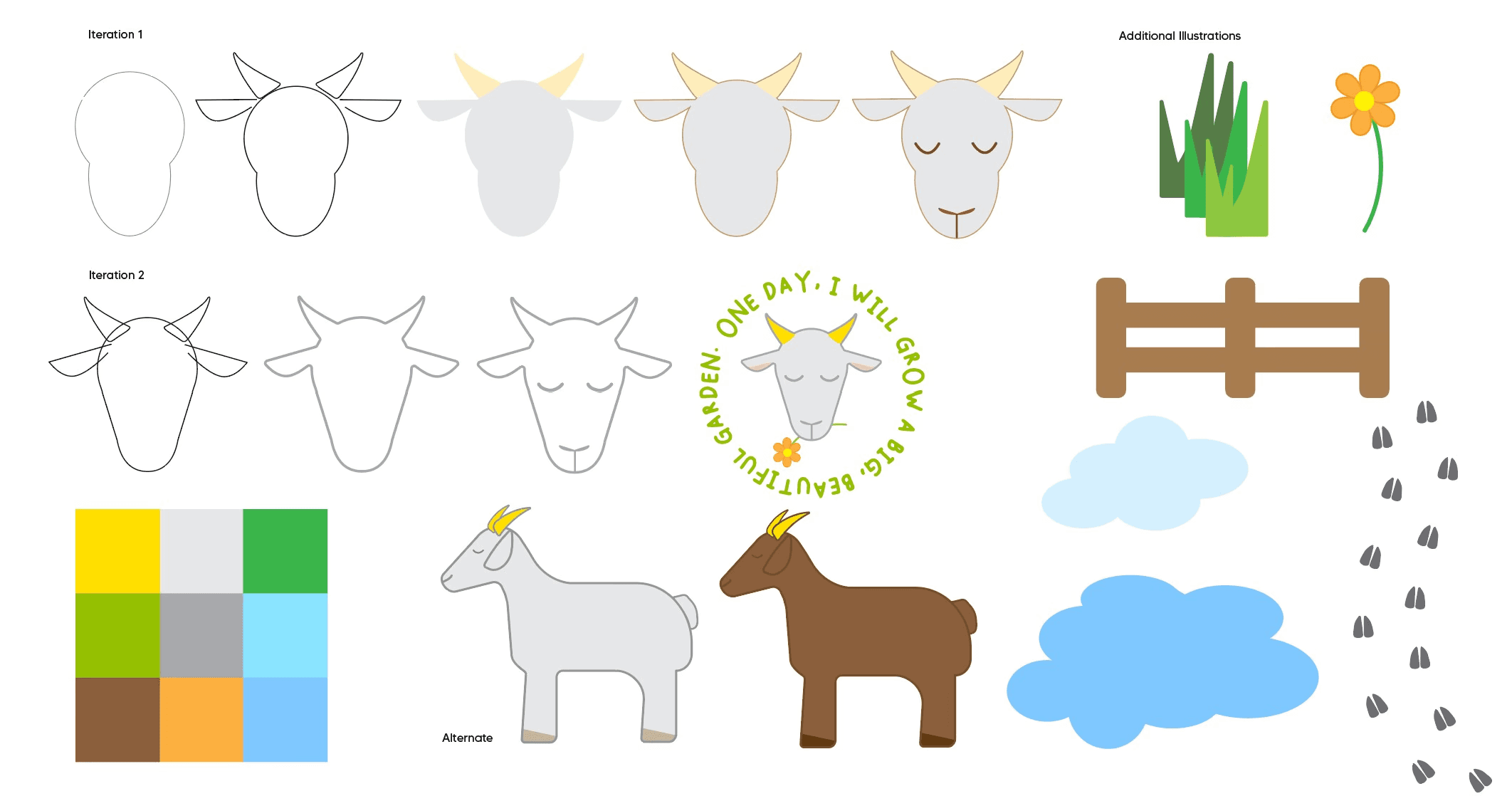 This tiny goat is excited to explore the world. He approaches each day with curiosity and a sense of wonder. His biggest dream is to grow a garden, but he's just a tiny goat who can't help but eat everything he sees. This was created as a character for a children's line, which includes a book, lunchbox, and outerwear, in hopes of motivating and inspiring children to grow their own "gardens."