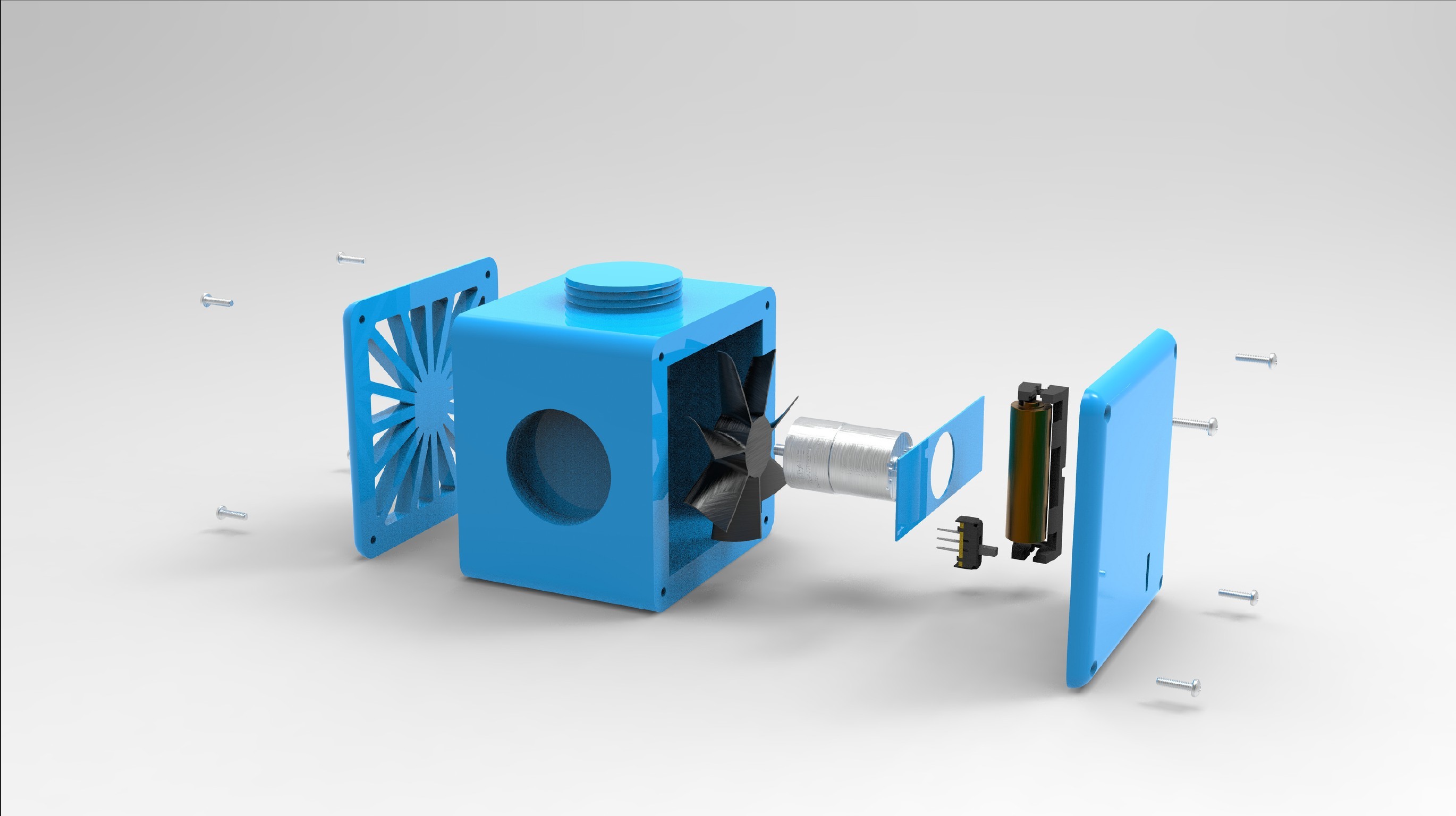 The challenge was coming up with a best way to give the fans power. At first, I was going to use USB-C charging, but realized batteries were better for remote areas and places that could be without outlets, like a van. The fan blades are supported by a bracket within the fan and there are minimal parts for easy repairability, another overarching factor of this project.